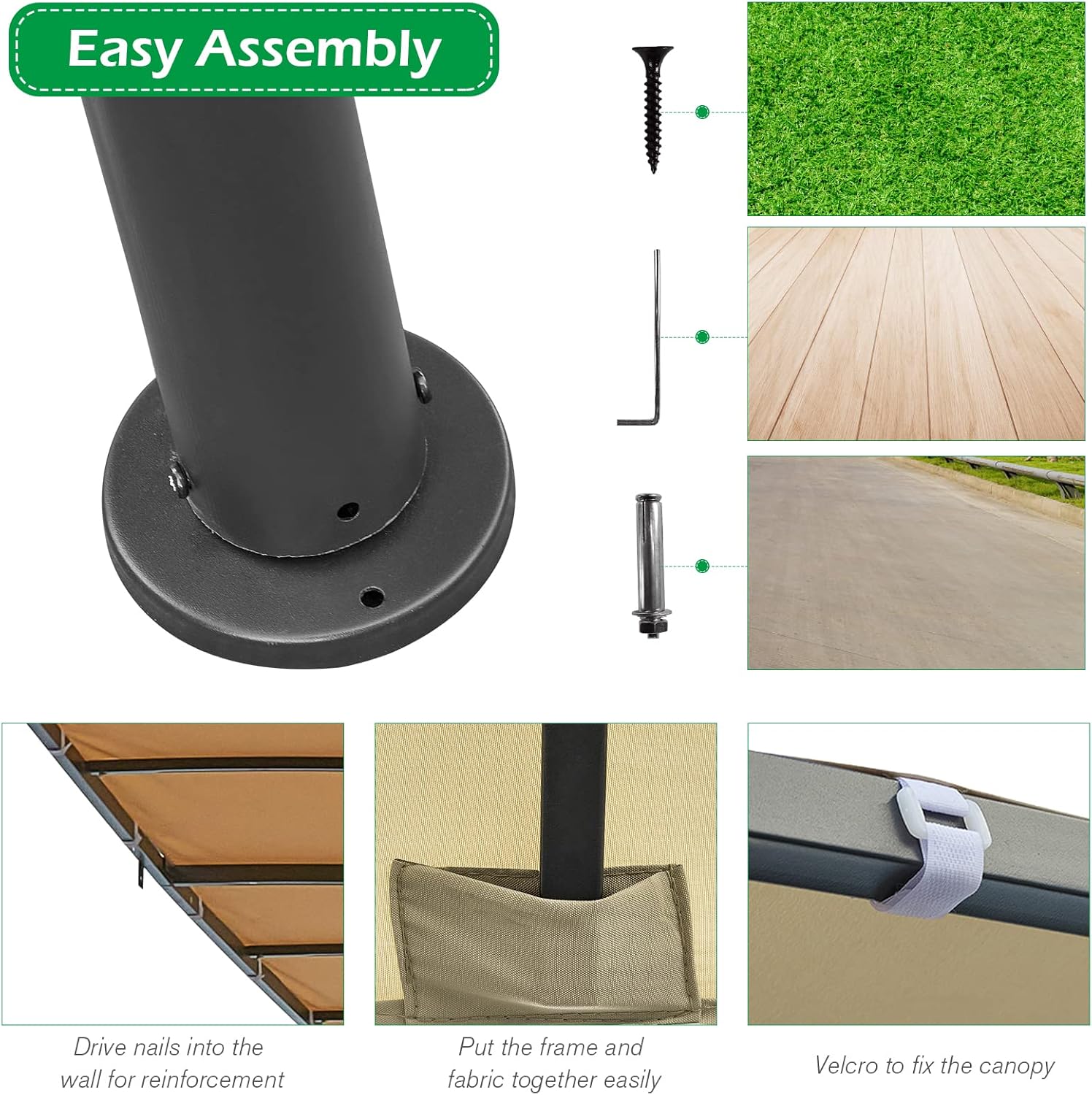 13'×10' Wall Mounted Peogola, UV Block Patio Awning Sunshade Canopy for Patio